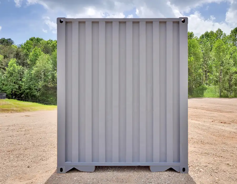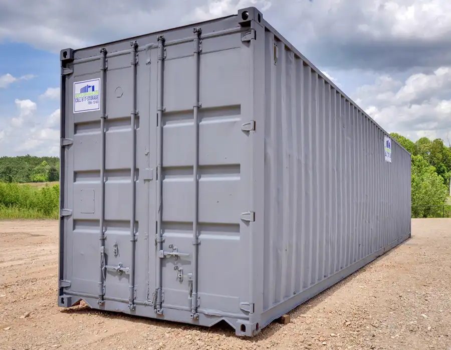 This 40-foot high-cube shipping container provides additional interior height and ample storage capacity while remaining wind- and watertight to protect contents from the elements. Constructed from durable corrugated steel, it features secure locking devices and ground-level access for easy loading and unloading. While it may show cosmetic rust or surface imperfections, it is free from holes or structural damage that would affect its weatherproof integrity. The container is portable, easily relocatable, and offers customizable options, including door direction.