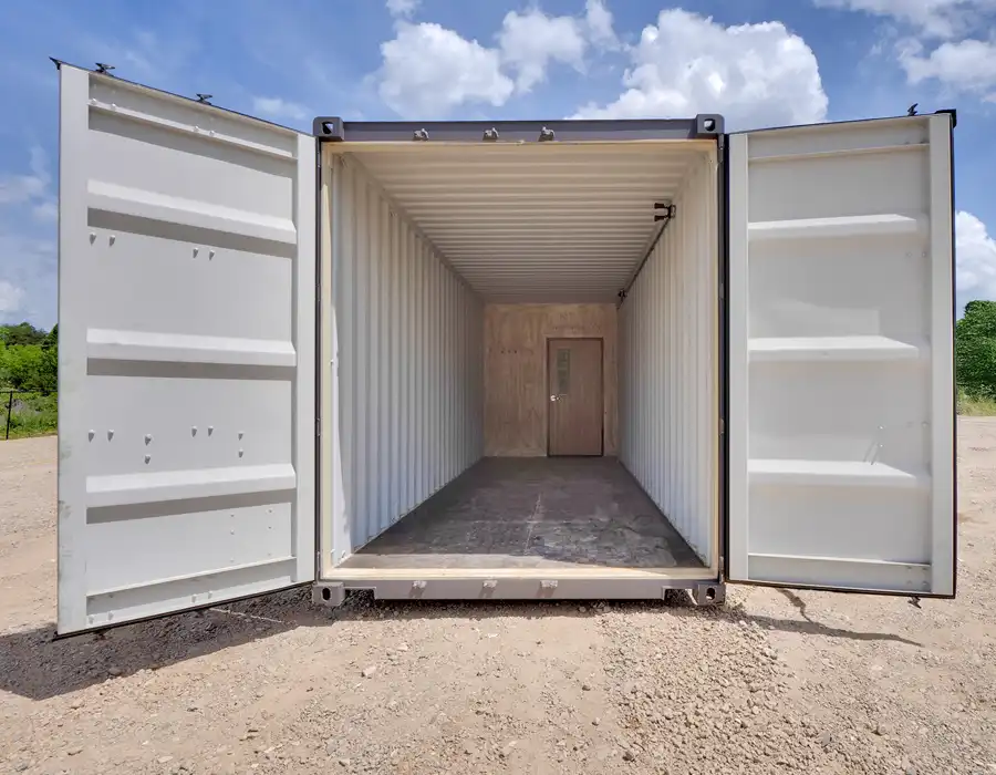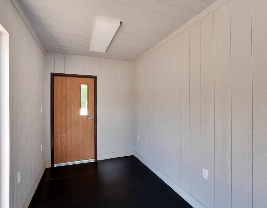 This 40-foot combo container office is professionally converted from a shipping container to deliver a durable, all-in-one solution for onsite office space and secure storage. The 12-foot office area is fully paneled and insulated and includes a thru-wall HVAC system for year-round comfort, along with a built-in desk and plan table that create a practical workspace for planning and day-to-day operations. The remaining portion of the container is an unfinished storage area with wood floors and steel walls, providing a rugged space for storing tools, equipment, and materials. Designed for versatility and reliability, this combo container office is well suited for job sites, remote locations, and temporary or long-term projects.